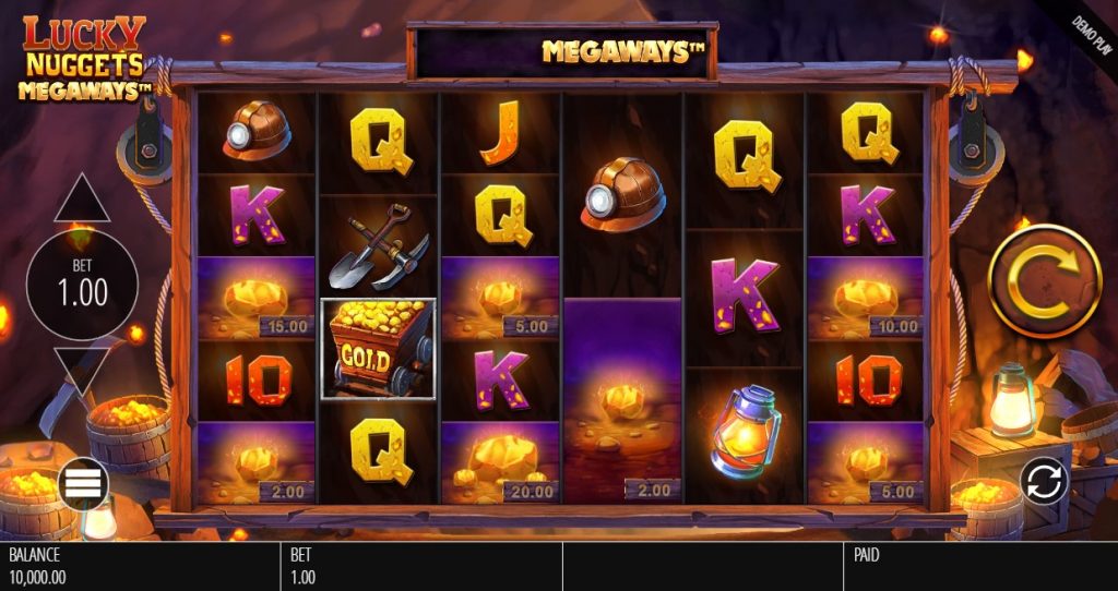 Jos olet pelannut kaivoskolikkopeliä aiemmin, ja niitä on paljon, joten on erittäin todennäköistä, että olet pelannut, Lucky Nuggets tuntuu heti tutulta. Blueprint ei ole tehnyt mitään merkittävää teeman kanssa, vaan on mieluummin jättänyt asiat aika lailla sikseen. Pelissä ei ole iSoftBetin Gold Digger Megawaysin kaltaista animoitua matkaa pitkin kuilua, eikä sen kaivoshahmon persoonallista panosta. Jopa Blueprintin aiemmissa Diamond Mine -kolikkopeleissä oli kiistatta enemmän elämää kuin Lucky Nuggetsissa, joka ei onnistunut herättämään kovinkaan paljon etsintähenkeä. Kuuden rullan ruudukko, jossa kussakin on enintään viisi symbolia, lepää kaivoksessa lyhtyjen, kullan ja kallion ympäröimänä – niin tavanomainen näkymä kuin vain voi olla. Tutustu tähän upeaan kolikkopeliin jossakin netti kasinot -pelissämme!
